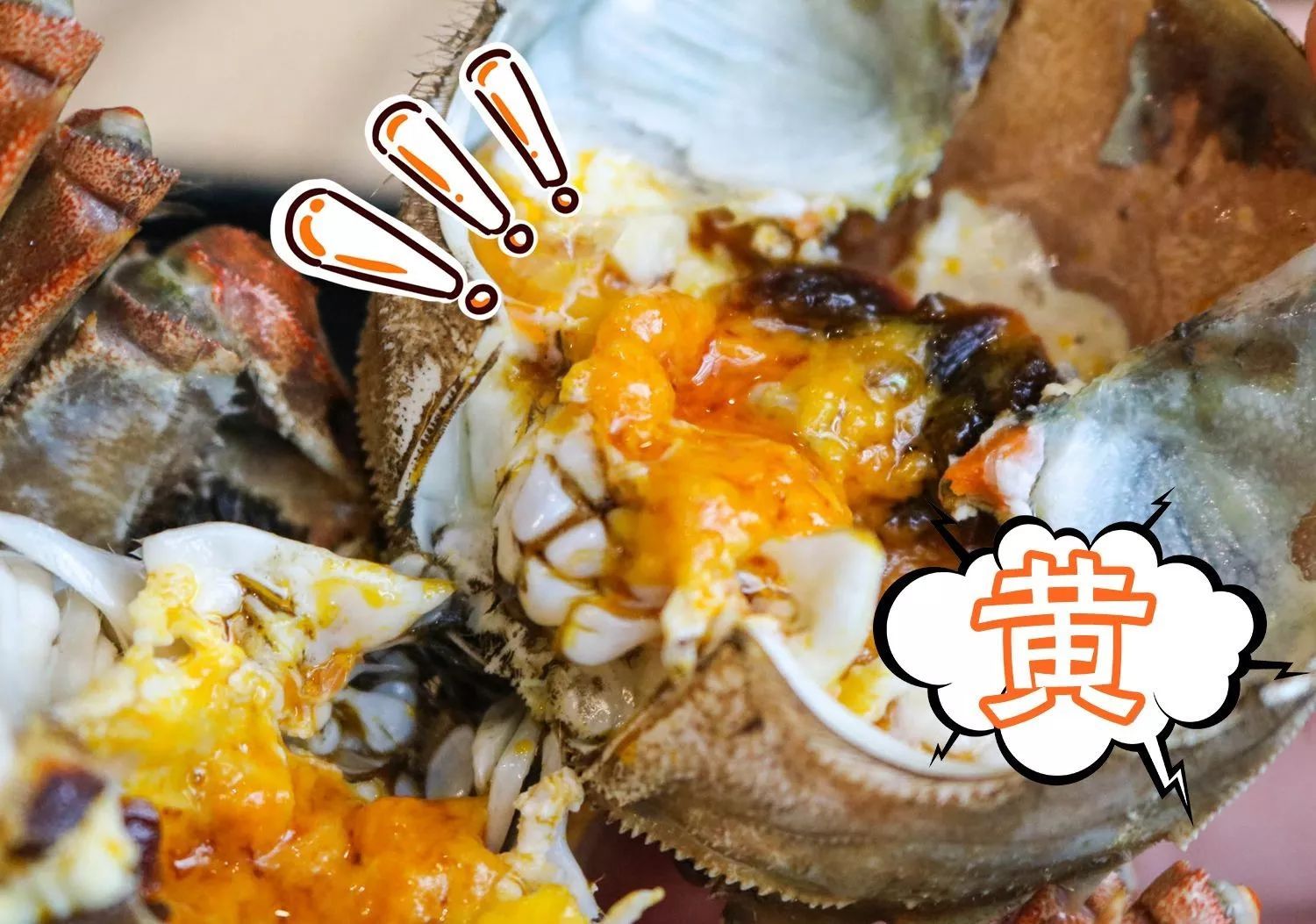 连蟹盖都不放过!爆屏的金黄!蟹黄带着黄油,轻轻吸一口在嘴里抿化,鲜甜味瞬间侵占整个口腔!