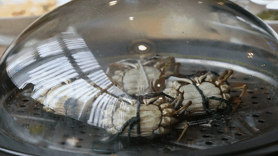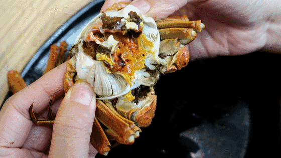 看到蟹的颜色渐渐变黄就可以掀开锅盖开吃了,“青背、白肚、金爪、黄毛”,大闸蟹更为饱满鲜甜,品相太好!
