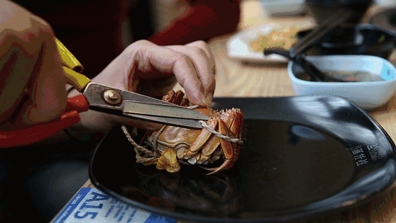 捏住蟹的爪子,慢慢地掰开,满满的都是蟹黄,小编咽口水的声音整个办公室都能听到了。