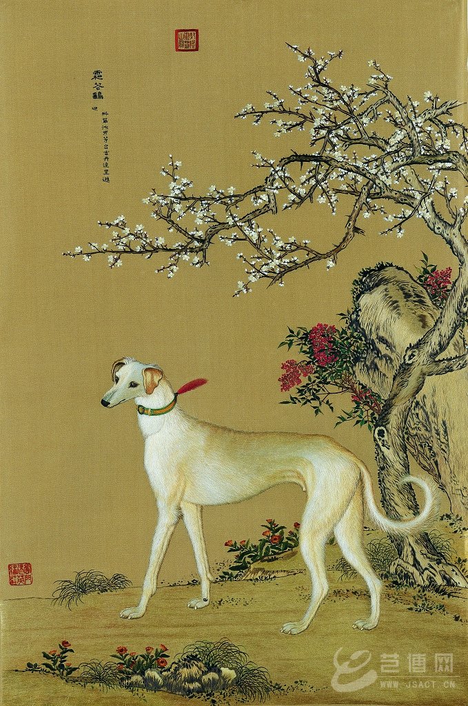 上世纪九十年代,我绣制了郎世宁的大量作品,如:花鸟16张,《百骏图》、《十俊犬》等。特别是我绣制的“十俊犬”,每条犬的姿态都不一样。这就需要我必须平时留意观察大自然的万物。我的灵感悟性就是来自于我对每种物体结构的仔细了解。只有真正了解了动物的骨架和肌肉,毛发的自然生长规律,绣出来的东西才会富有灵性。当时我拿着郎世宁的十俊犬,仔细揣摩色彩的搭配和丝理的走向,抓住了几个要领。