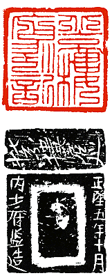 花押印,皆为朱文,形状多种多样。从传世的元朝押印来看,大体上是长方形的,有的仅一汉字,有的仅刻花押,有的上刻姓氏,下部兼刻花押。这上部的文字无论用楷书、隶书甚至篆书,都有一种古拙凝重的风格,是后世创作今体字印章不可多得的参考资料。