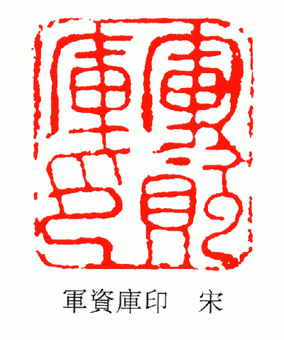 宋代的官印,字形清晰,易于辨认,从其叠篆格式看,虽较唐代进了一步,但却远未达到金元时期叠绕环曲,不留空隙的地步。这种官印本身就具有较强的艺术气质,加上当时铸印的匠师们以此为职业,在无数次的制作中,必然要发现盘曲环绕的文字的艺术美(其实任何一种形式都有其内在的艺术魅力,关键在于作者是不是善于去发掘和展示)再综合自己的艺思浸润进去,使美的东西得以升华,更有一些职位较低的官印,如“军资库印”等篆字极少盘曲,线条圆润浑厚、自然流畅,甚为可爱。因此宋代官印所具有的篆法自然流畅,讲究线条丰润圆通的独特风貌,蕴藏着无数工匠不自觉的审美情趣和追求,蕴藏着他们在长期实践中迸发出的艺术火花。在中国篆刻艺术史上,它完全能据占据一席之地。