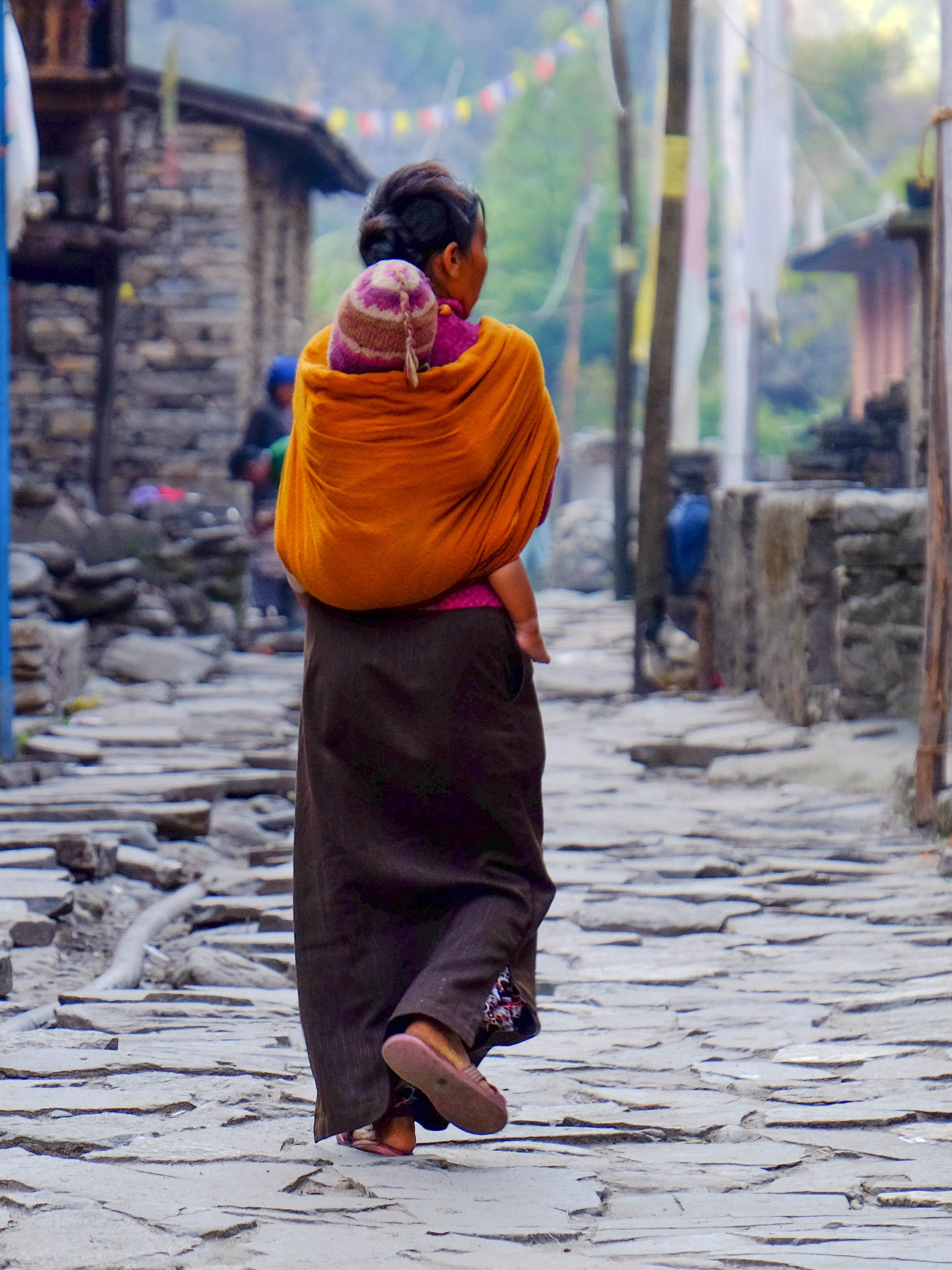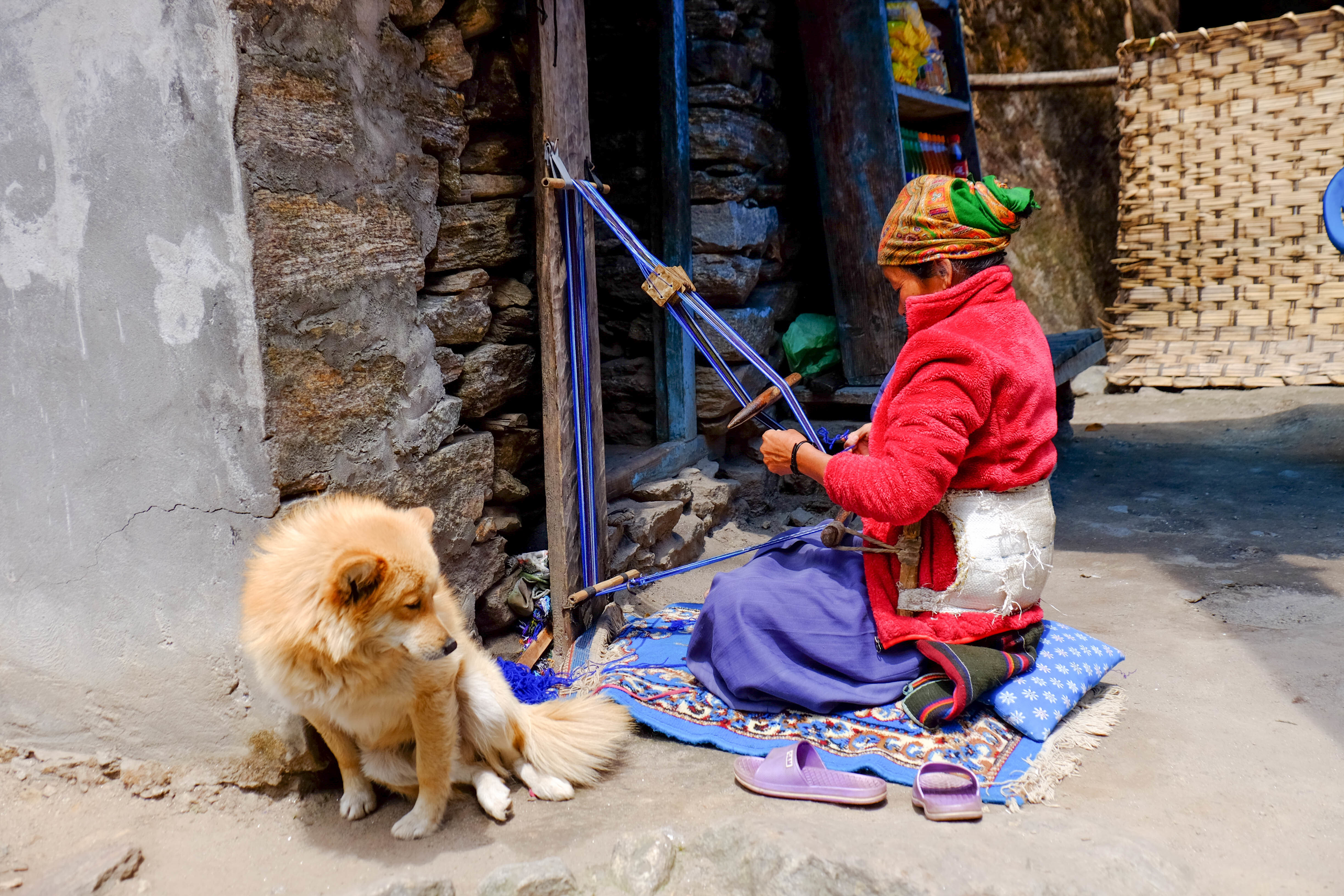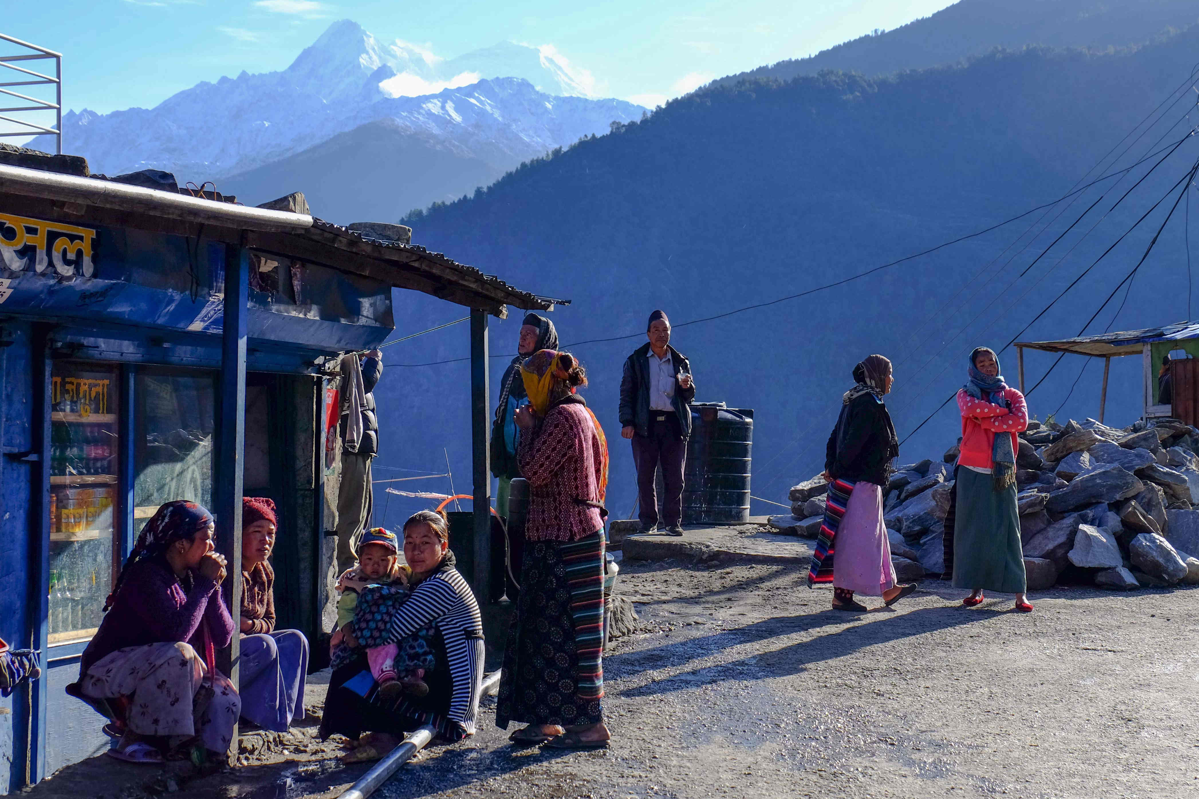 第二天天气晴好,7.30吃完早饭,带着兴奋和迫不及待的心情,开始徒步。说起蓝塘地区的居民,大多是塔芒人(Tamang),据说是几百年前从西藏那边翻越喜马拉雅山过来的,因此,他们的宗教信仰,生活习俗与服饰都与藏族人非常接近。在这次徒步的后半部分,就经过几个塔芒人集中的村子,由于几百年的与世隔绝,他们的传统和习俗保存完好。