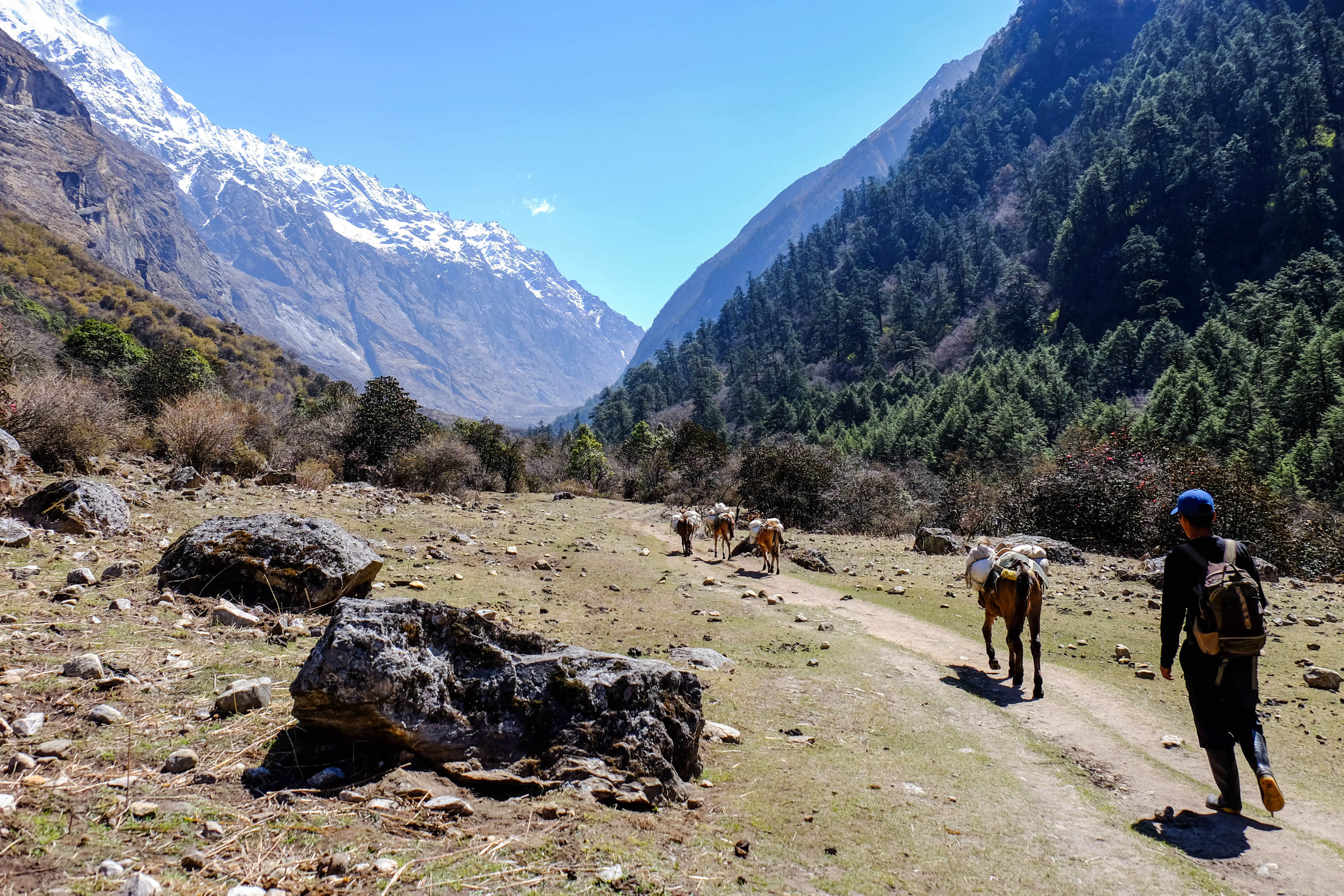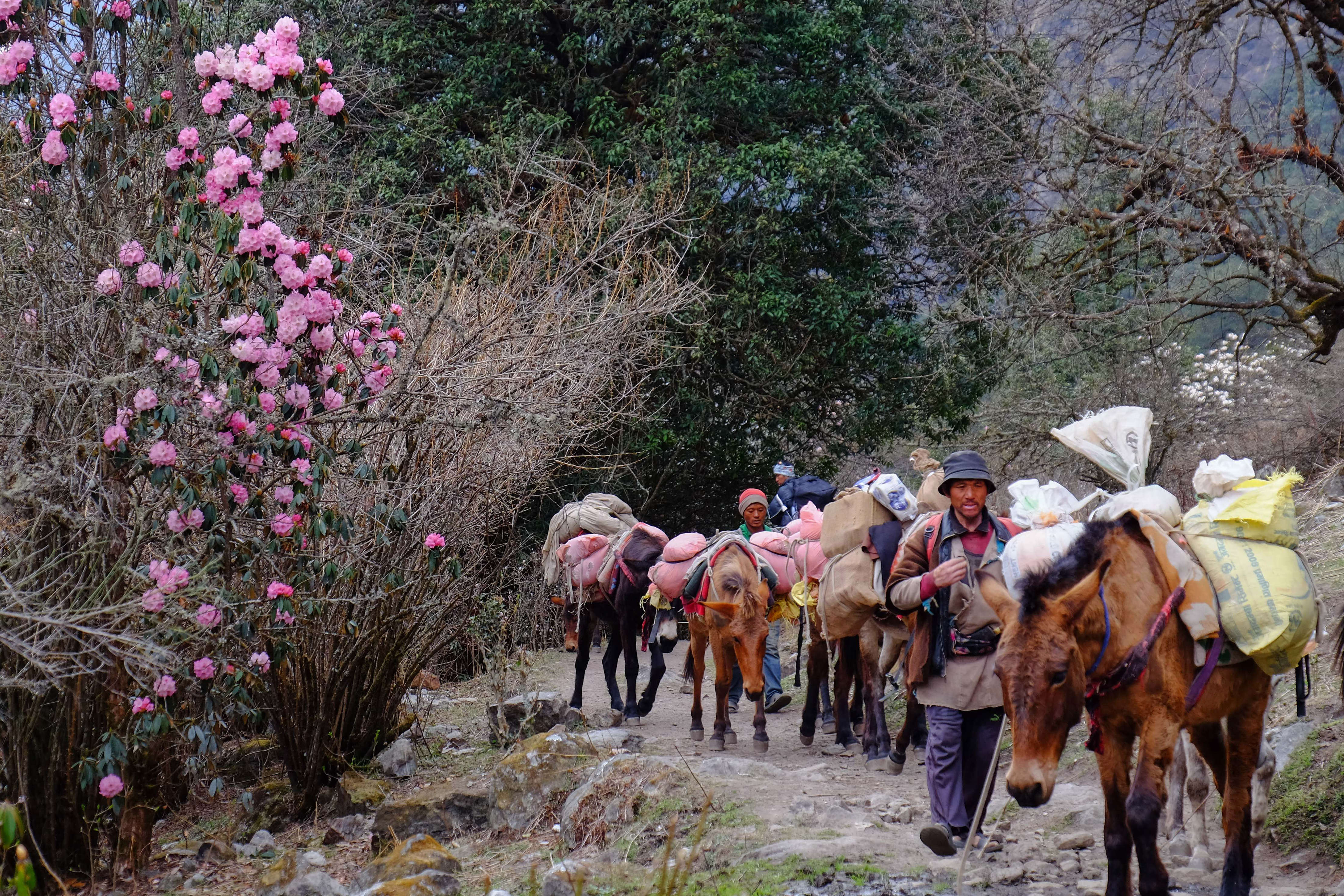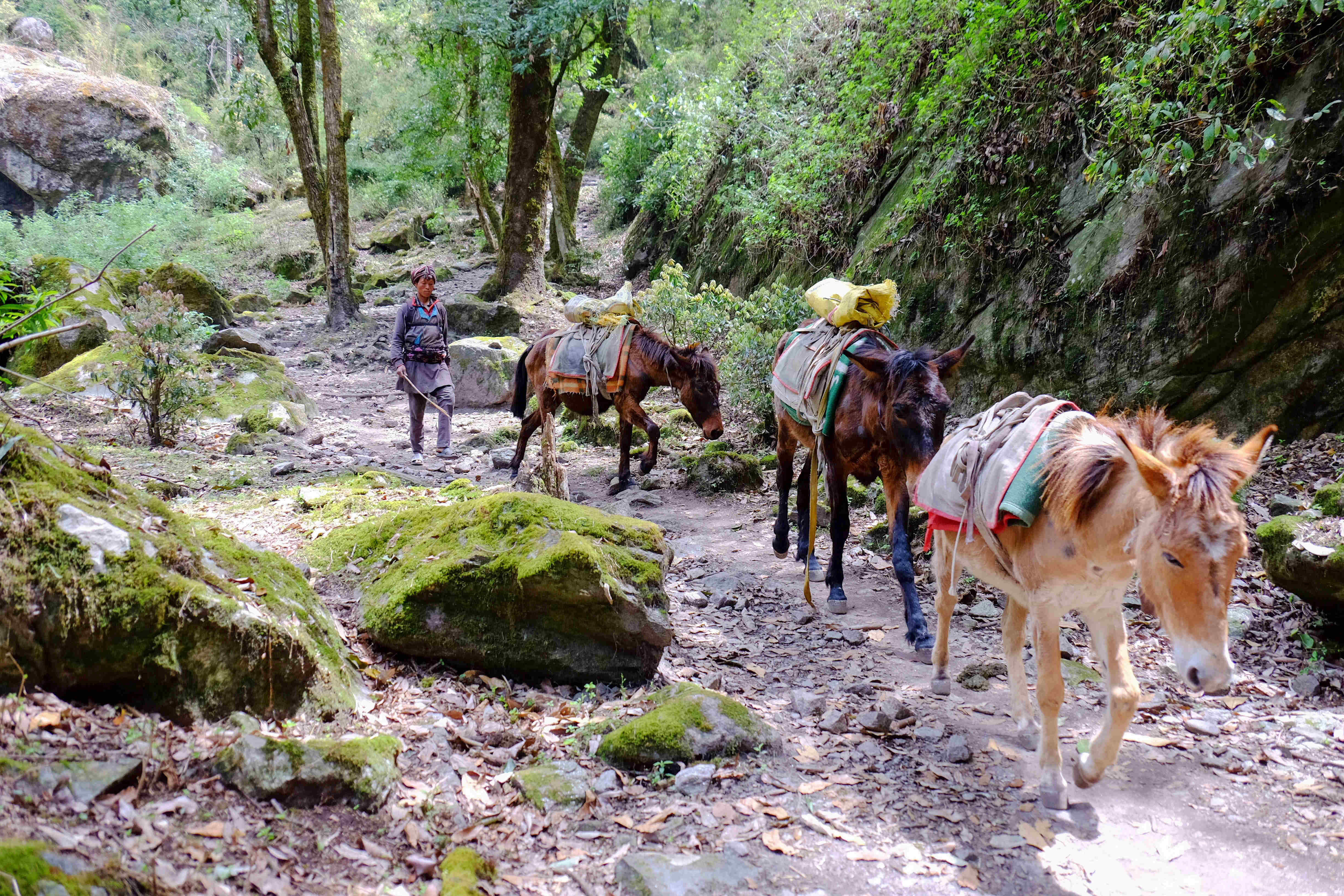 西塔提醒我,在山里徒步,一定要让着驴队,要不驴脾气上来了,一脚就把你踢下山去。所以,每次听见运输队的铃铛声,我都提前避开。