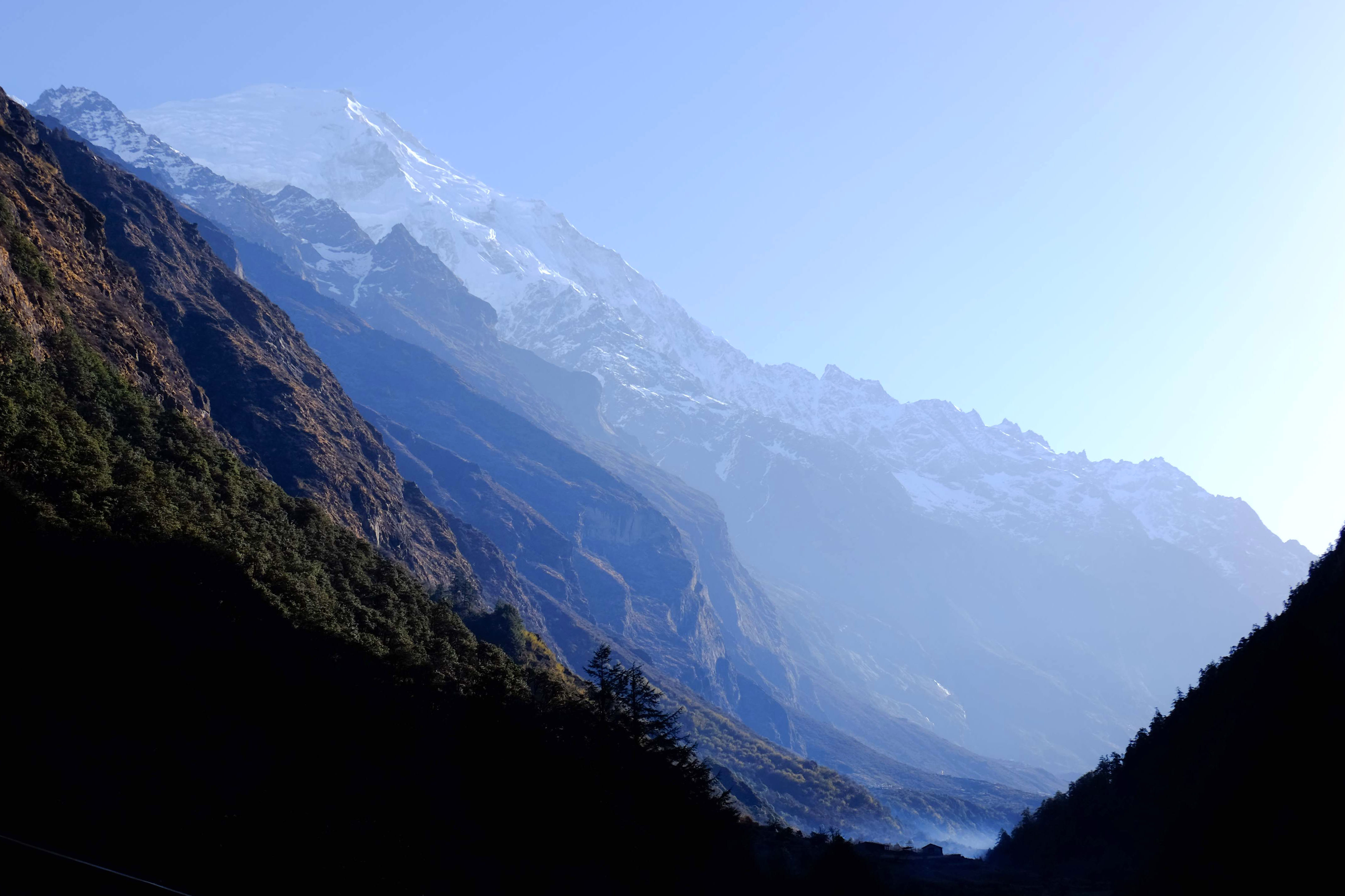 7点左右,等早餐,看着远处有些积雪的高峰问藏族老板这是哪座山峰?冯敬尧轻蔑的看了我一眼,这也叫能叫山(mountain), 这就是一个小山坡(hill). 尼泊尔高山很多,八千米以上的就有8座,5000米以下的无数,都没啥名字,可是要知道欧洲最高峰勃郎峰也只有4800米啊。临走之前和冯敬尧告别,他说我像藏族人,你说他是夸我呢,还是夸我呢?