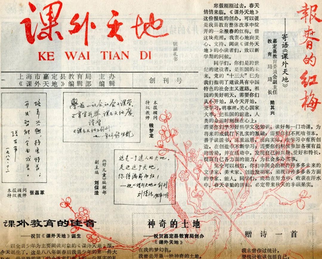 “能在报人生涯经历一张报纸的诞生和成长,是一件多么幸运的事。”有位老报人如是说。对我而言,曾经历了《新苗》《课外天地》《上海科技学院》《校外新天地》等4份内部报刊的创刊、成长,确是已经够幸运的了。