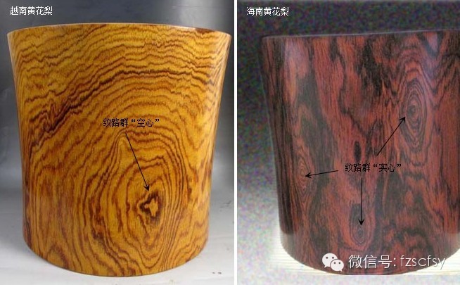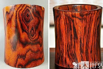 1.微凹黄檀上可见鬼脸纹 2.近似交趾黄檀的微凹黄檀笔筒