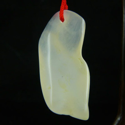 高山鱼脑冻石 色洁白,质温润,中泛黄彩,肌理有团簇状的棉花纹,或如煮熟的鱼脑状纹。质近水坑鱼脑冻。