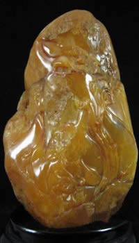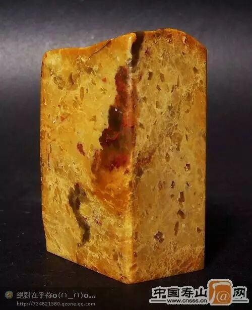黄高山石 指纯黄色的高山石,石质凝腻纯洁如蜜腊、蜜果。品质佳者可与田黄石、都成杭石相比美。