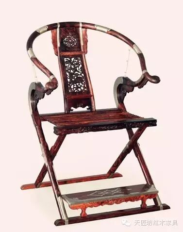 交椅就是腿足相交带有靠背的马和。交椅的椅圈一般由三至五节样接而成,下由八根圆木交结而成,交结关节处,多以金属件固定。交椅可以折叠,携带和存放十分方便。