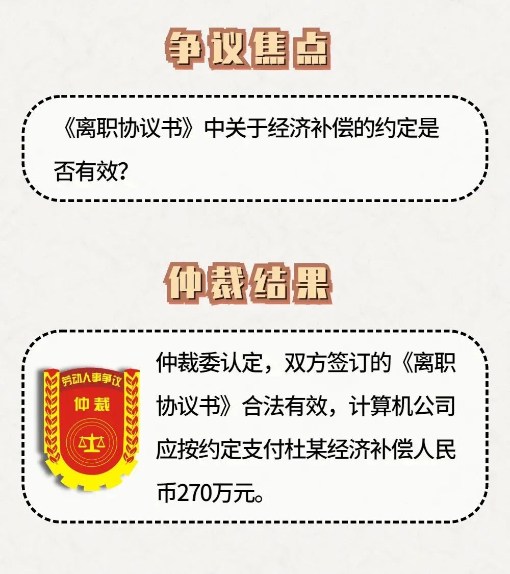 首先,《离职协议书》中约定的经济补偿是否有效?根据最高人民法院《关于审理劳动争议案件适用法律问题的解释(一)》第三十五条规定,劳动者与用人单位就解除或者终止劳动合同办理相关手续、支付工资报酬、加班费、经济补偿或者赔偿金等达成的协议,不违反法律、行政法规的强制性规定,且不存在欺诈、胁迫或者乘人之危情形的,应当认定有效。可见,经济补偿属于可以由劳动者和用人单位自主协商的事项范围。除有法定的可撤销的情形外,在双方基于真实意思表示的情况下达成合意的,应当遵循尊重和保护意思自治原则,协议自生效之日起对双方均具有约束力。同时,《离职协议书》第4条约定了杜某离职后的保密义务,并约定“保密费包含在经济补偿中”。作为计算机公司的常务副总裁,杜某离职后的保密义务与计算机公司的利益密切相关,计算机公司正是因此才在《离职协议书》中重申了杜某的保密义务。同时根据双方签订的劳动合同,杜某离职后的保密义务期限为自离职之日起两年,计算机公司将在杜某办理完离职手续后一次性支付保密费。因此,《离职协议书》中约定的经济补偿款并不单纯仅指解除劳动合同的经济补偿,还包括了杜某离职后应得的保密费。即使如计算机公司所称,该经济补偿为解除劳动合同的经济补偿,《中华人民共和国劳动合同法》第四十六条、第四十七条关于经济补偿支付情形及支付标准的规定,不属于强行法范畴,劳动者与用人单位的约定高于法定标准,属于对其自身权利的自主处分,除有法定的可撤销的情形外,合法有效,当事人应当自觉履行。