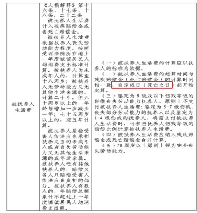 https://mmbiz.qpic.cn/mmbiz_png/Xmhq7fYmiclbY0CGNXib5iaKaOTFyPibgicGicicG1fBAtKzMtcibG41xriccWNO6prsa5ziaUnGrSeqgptrcKuTDdY5U9qA/640?wx_fmt=png&from=appmsg&tp=wxpic&wxfrom=5&wx_lazy=1&wx_co=1上述文件中均列明被扶养人生活费自受害人死亡之日起计算,该计算与《人损解释》第22条中的规定在特定情况下存在冲突,从公平原则及民事赔偿原则角度出发,“上一年度”之定义,规定为以受害人死亡时的上一年度似乎更具有合理性。
