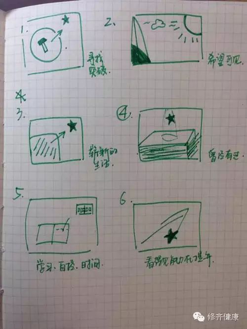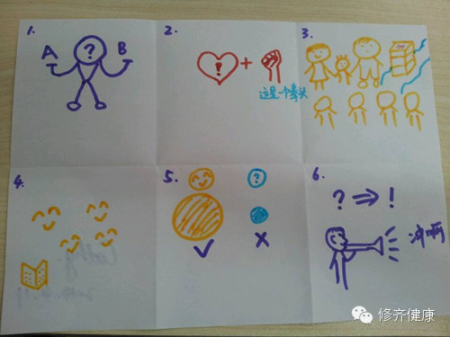 从第一格“迷茫,不知前方的路”的一团乱麻,到最后一格“实现内心的满足”的笑脸,你是怎么做到的?很棒的故事!