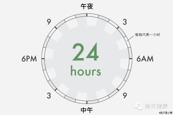 为了直观体现一天安排,设计者将圆圈顶端刻度划为午夜12点,而底部刻度则为中午12点,每一格都代表一个小时。