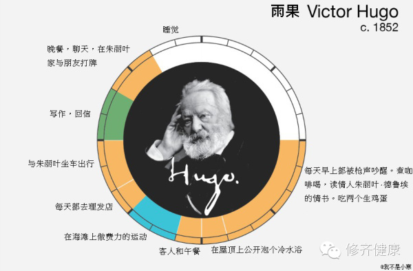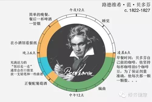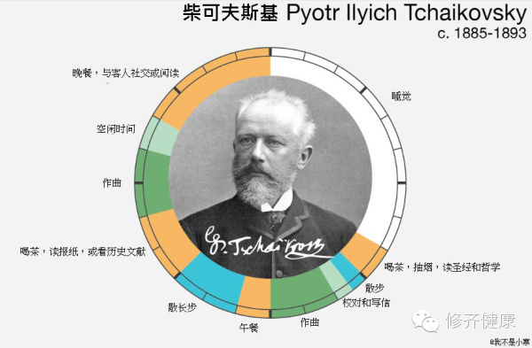 《每日邮报》根据美国作家Mason Curry的著作《每日惯例:艺术家是如何工作的?》刊登出了历史上各个领域的伟人的作息时间表,看看那些伟人每天都在做些什么?从时间表中可以看出,伟人们并没有像大家想的那样,为了工作、创作而“废寝忘食”,而是作息规律,计划周详。大部分人每天坚持散步及运动,同时保持与人的交流,如去酒吧坐坐、写信、聊天等。