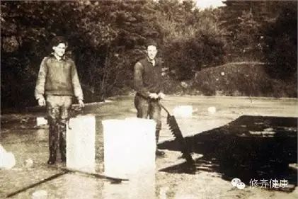 在冰箱被发明出来之前,在冬天里“收获”冰块并将它们存放起来以备夏天使用是冷藏东西最好的办法。这个工作落到了切冰工的头上。他们必须在冰冻住了的池塘或湖面上切割出巨大的冰块,还得冒着摔进水中被冻死的危险。