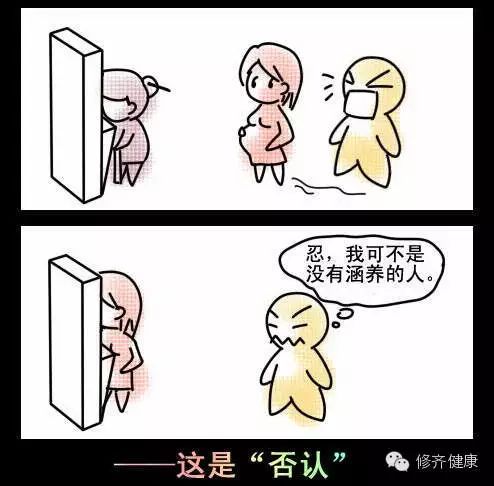 又叫否认。这个是最没技术含量的一种心理防御机制,就是矢口否认。当然这不是说那种有意的睁着眼睛说瞎话的无赖。他这个,就是因为陡然面临巨大感情冲击难以接受,于是他的“自我”就用这种方式来试图让他逃避受伤——当然是暂时的。电影里常常能看到这种否认行为。比如当着自己的面儿子忽然被汽车压死了,当妈妈的就可能坚持说孩子没死你不许胡说!日常生活也有一些比这含蓄的例子。比如这位个性很依赖,可是自己又觉得这岁数了这么依赖人不怎么有面子,于是就时不时的跟人说自己怎么的独立,还能找出谁谁来做例子说你看这些人多依赖,像我这么独立的人如今真不好找。他这其实不是跟你撒谎或是对付。他自己是真的觉得那些人比自己差多了,他是真的觉得自己特独立的。心理防御机制就是这么诡异,能让人自己忽悠自己。