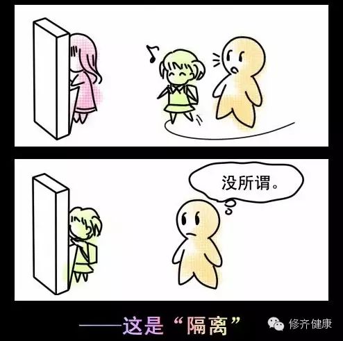 这说的是情感反应的隔离。就是说,要是遇上啥很有感情冲击的事,为了逃避这种感情冲击,就表现得极为平静极为理性。比如爱侣忽然死亡,活着的这位在跟人说这件事的时候,可能会表现得出奇的平静。其实她这不是修行高超城府很深所以喜怒不行于色。其实她就是不能让感情冲破这个堤坝,不然她就会崩溃了。