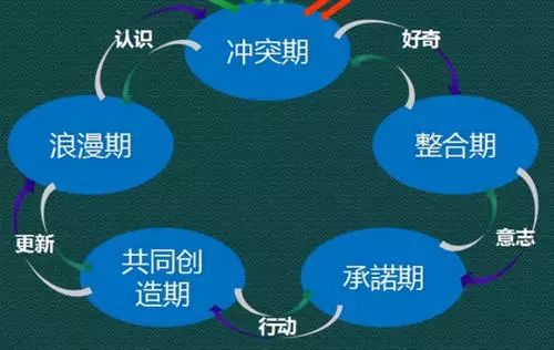 关系的发展有五个阶段,分别是浪漫期、权力争夺期、稳定期、承诺期和共同创造期。