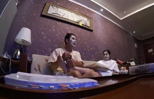 傍晚,于晓光为秋瓷炫做足底按摩慰劳老婆,并称很感动。秋瓷炫也夸老公按摩手艺一流。见到有人要拍摄时,于晓光幽默地说:“这位客人脚太大了,你们不要拍了。”逗得秋瓷炫忍不住笑了出来。