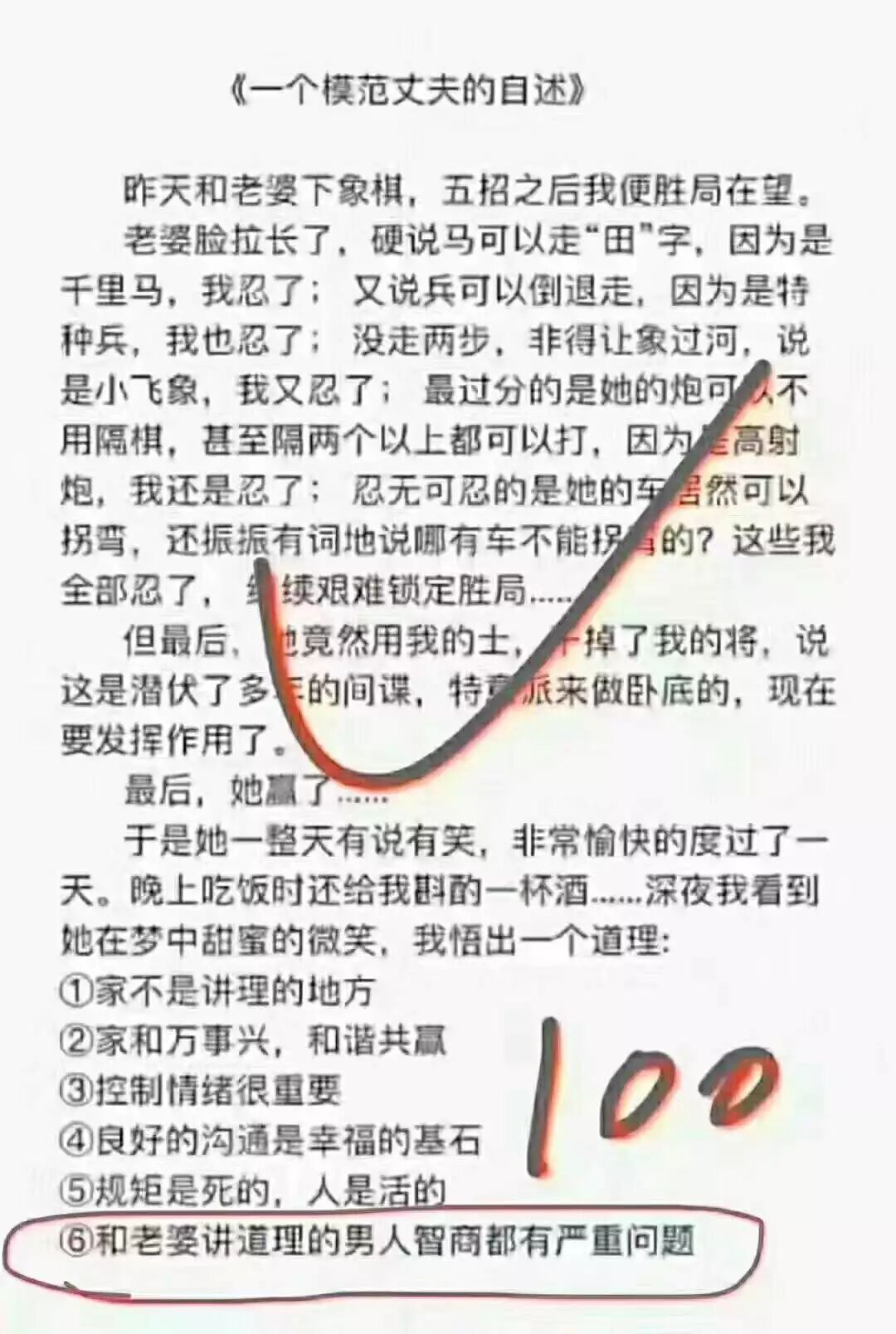 聪明的男人都会说:在我们家大事我做主,小事她做主。不过结婚十几年了,我们家也没有发生过大事。