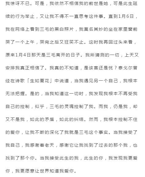 但是姑娘,既然你在文中把自己说成三毛转世,甚至就是三毛本人,那你有没有一点三毛为爱无私付出的行为呢?