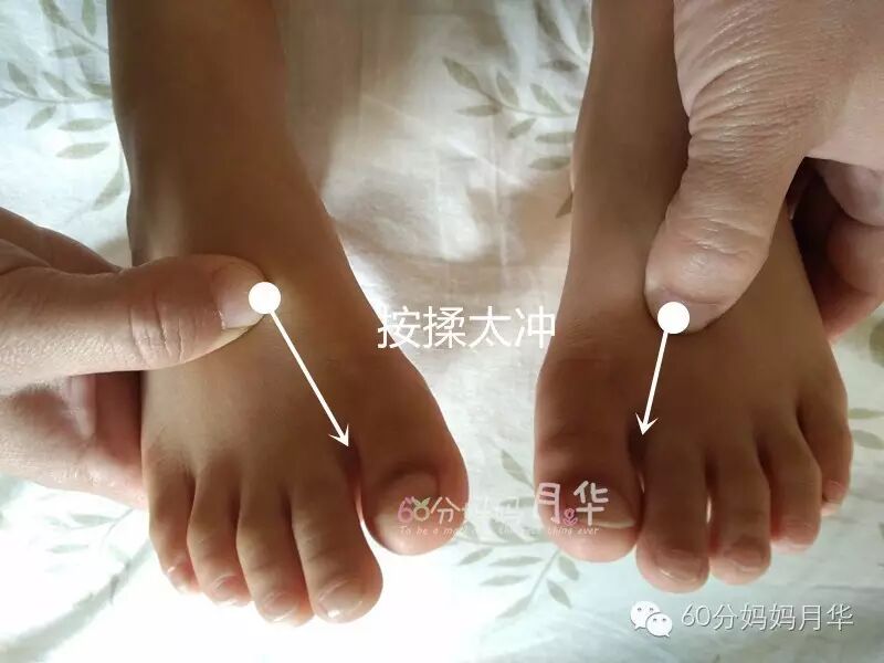 如果宝宝脾气大,可以加上揉太冲1分钟