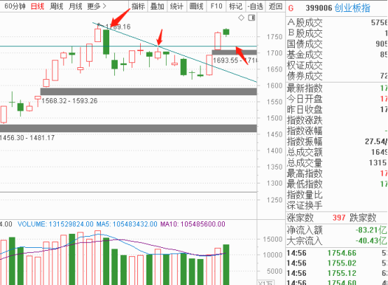 创业板今天 表现较为较弱,承压于1780,小跌0.38%,略微放量。
