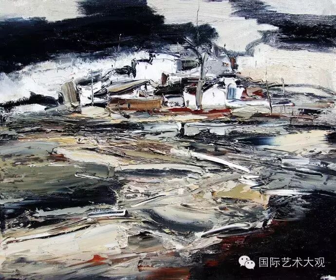 吴冠中的油画语言也是东方的,这是由吴冠中的精神内涵所决定。中国独特的江南水乡文化.孕育了吴冠中独特的审美心理结构从对这种心理结构的体验中,吴冠中找到了与其相对应的’‘点“、‘’线”、“面“构成方式和色彩表达方式,所有这些独特性决定并形成了吴冠中独特的个性化语言形式。