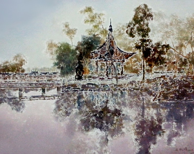 对于书法和中国画的修养,使他能把中国民族的文化精神融入进去,进而不断学习西方油画技法。全面熟悉材料手段。这就使吴秋明创作出了具有中国情调,赋有宁静诗意的油画风景山水。