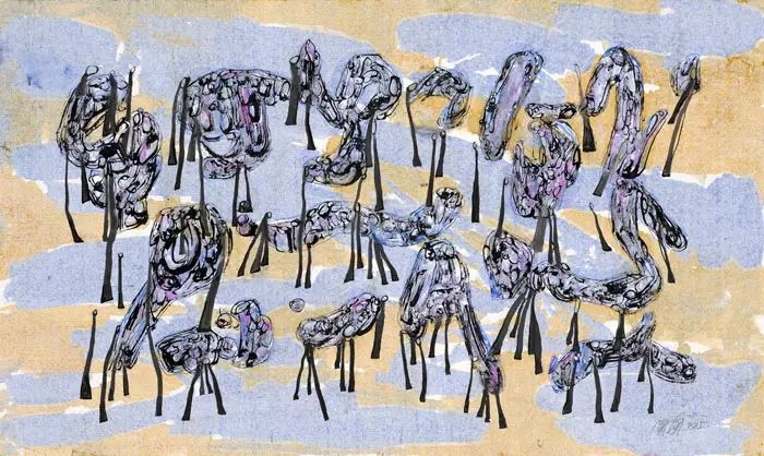 成为画家,画的是抽象绘画。我常常跟人说,我每一次铺开画纸,都是一次探险的出发。我太不喜欢重复,无法按规定的路线去画。绘画的征途中必须有无法前行的悬崖,有深陷其中难以自拔的沼泽和沉沙,于一次次鼓足勇气的跳跃后,若能有一个喜出望外的到达;于一次次奋力的推搡挣扎后,若能摆脱沼泽和沉沙,那就不负每一次的出发,也真心期待下一次精彩的到达。