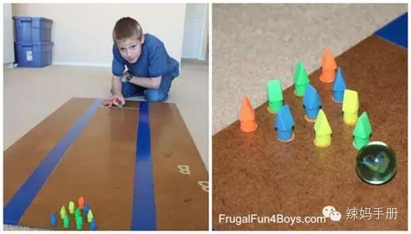 18、 用橡皮擦和大理石组成一个迷你保龄球游戏