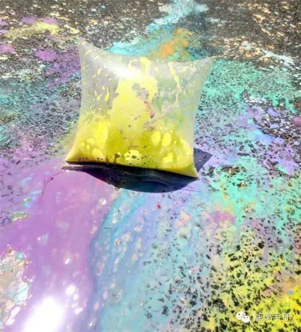 5、 爆炸的涂料袋,让孩子更有艺术色彩