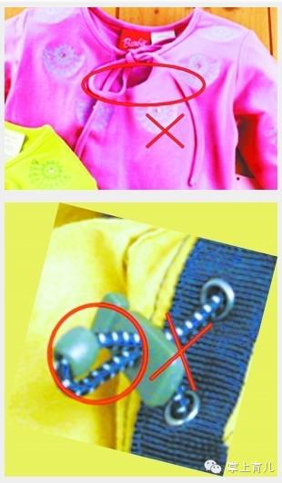 童装上的绳带类装饰 易造成两类安全事故因为小孩子年纪尚小无法正确预测风险,也没有足够的能力帮助自己摆脱风险,因此,设计不合理的服装可能对儿童产生机械安全性危害,如绊倒、滑倒、缠绕、哽塞、窒息、勒伤、尖锐物体划伤和局部缺血性伤害等。