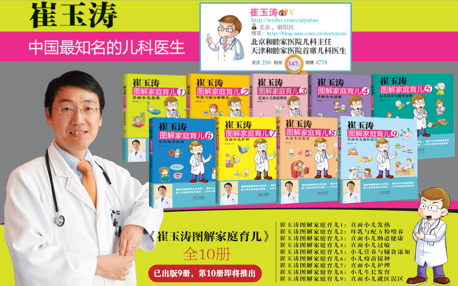 崔玉涛,中国最具人气的儿科医师,没有之一!他是中国儿科领域的权威医生,是北京和睦家医院儿科主任,作为明星医生,他的微博粉丝过百万人,韩寒父子都关 注了他。他的微博内容已成为育儿媒体经常选用的素材。马伊琍,李小萌,李小璐,刘孜的宝宝都曾得到过他的悉心照顾。