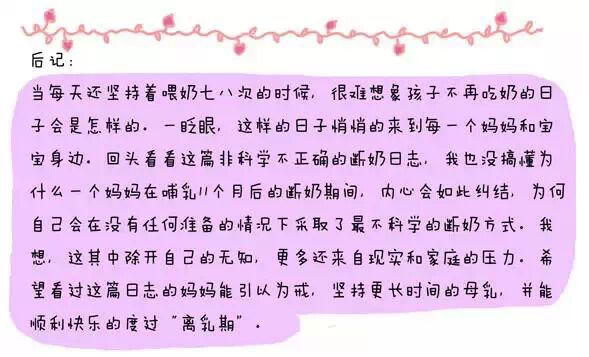 当我每天还坚持着喂奶七八次的候,真的很难想象孩子不再吃奶的日子会是怎样的。一眨眼,这样的日子悄悄的来到………这是记录我和小花生米非科学不正确的断奶历程,希望看了的你能引以为戒。(点击图片然后双击可放大图片查看)