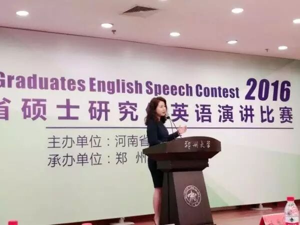2016年河南省硕士研究生英语演讲比赛于5月7日至8日在郑州大学成功举办。本届比赛由河南省教育厅主办,郑州大学承办,来自郑州大学、河南大学、解放军信息工程大学、解放军外国语大学等21所高校的76名非英语专业的硕士研究生参加了比赛。文丰律师事务所何静律师(郑州大学法学院2015级宪法学与行政法学专业研究生)以自己流利的口语、扎实的英语功底脱颖而出,荣获此次比赛的一等奖。
