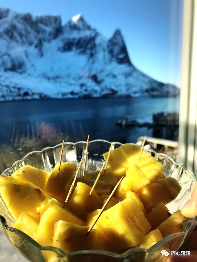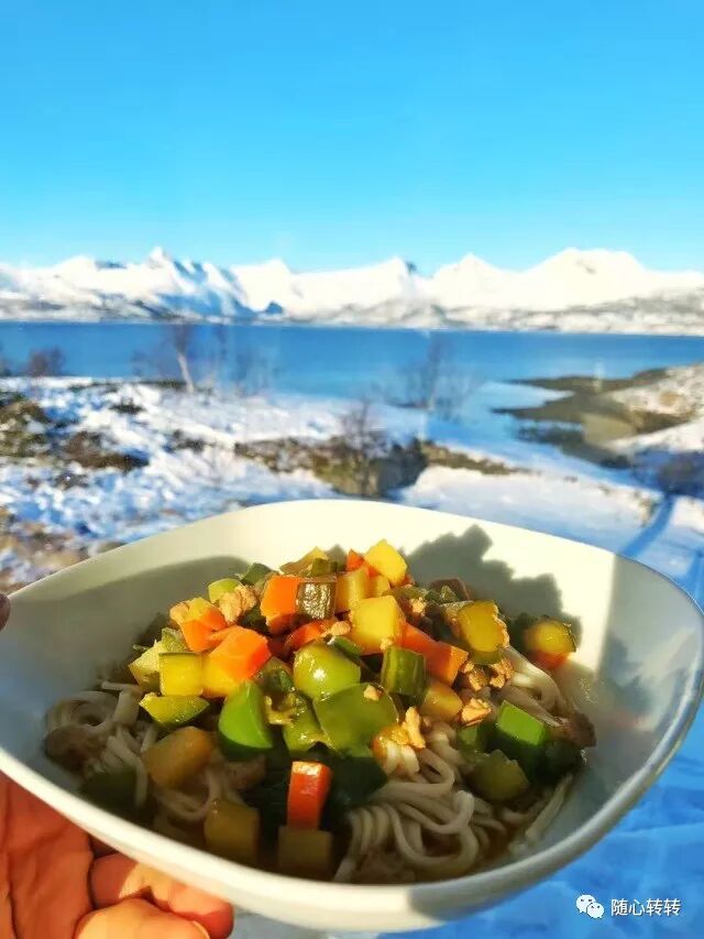 在冰天雪地里吃碗热面条,新鲜的水果,绝对是完美搭配。