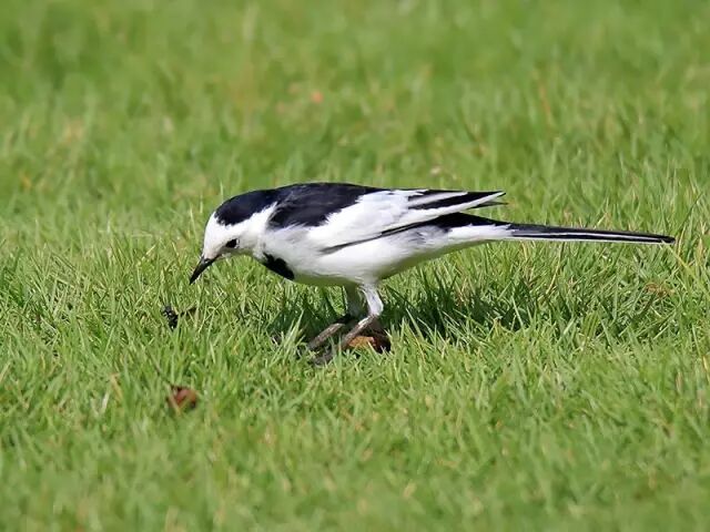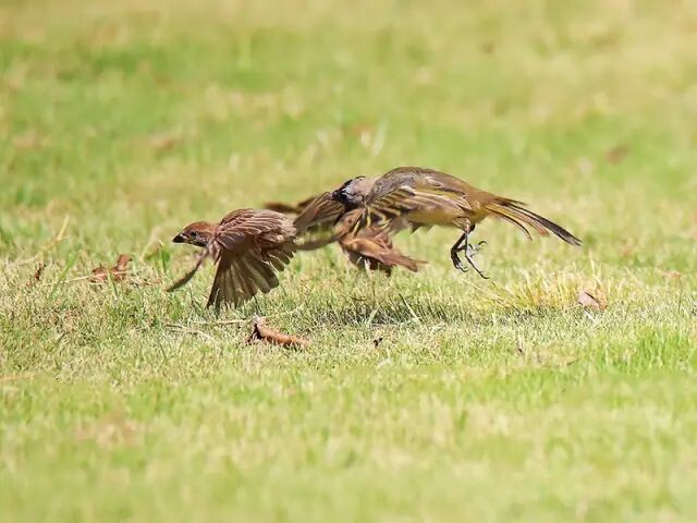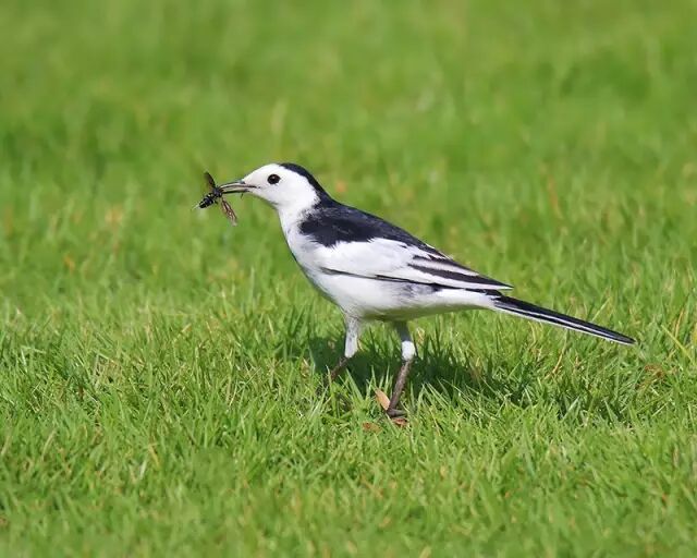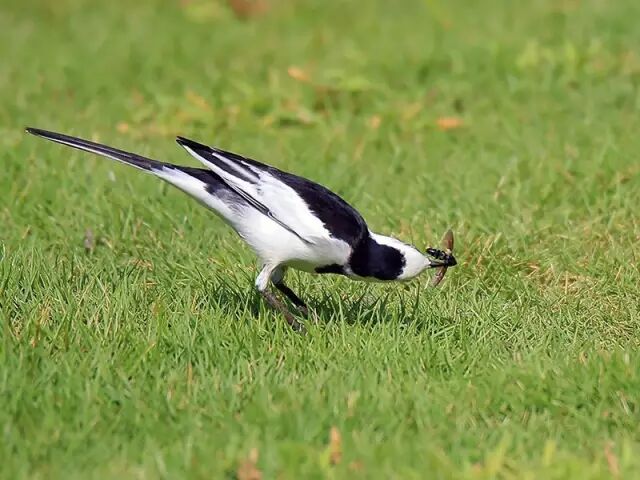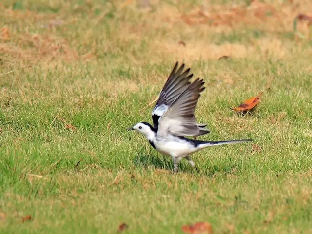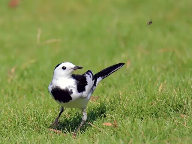 当然,并非只有我会捕捉害虫,许许多多的鸟类也都会在这样做的。你看,那天在草坪上除了我外,还有很多的麻雀、白头翁呢,偶然间有数只鹊鸲也一起来凑热闹哩!