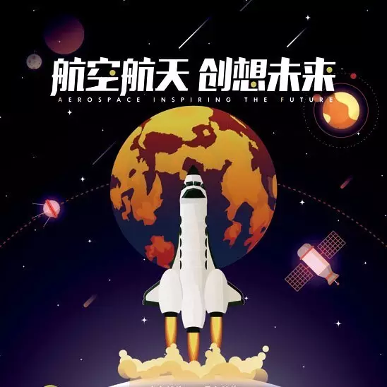 围绕“飞向太空”意象进行创作,可描绘航天科技给现今生活带来的改变。A2幅面、分辩率300dpi。