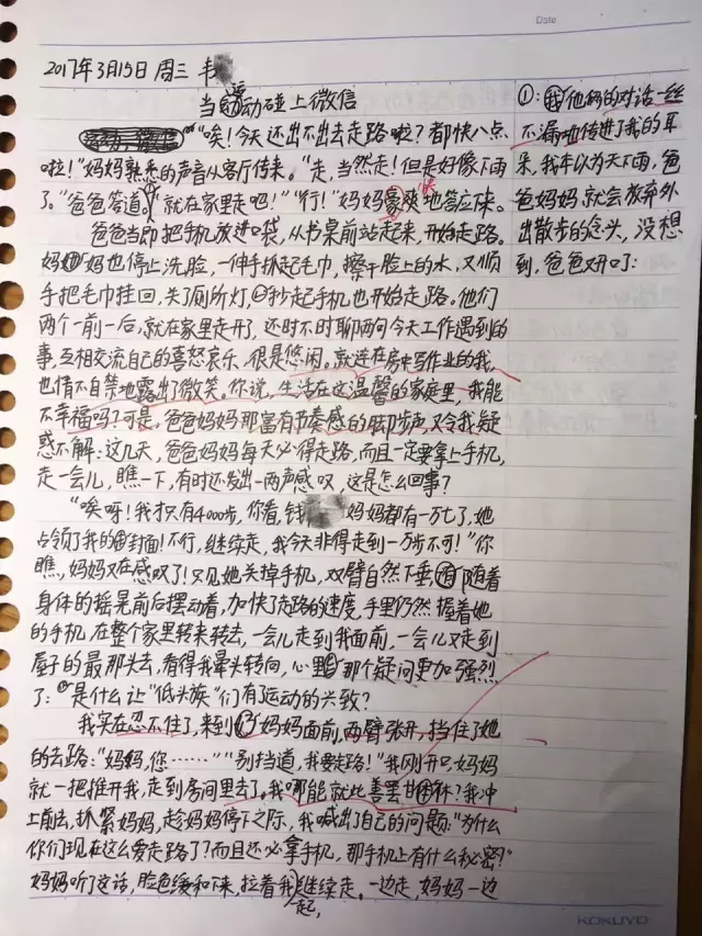 杭州求是小学五年级的韦美同学,在作文中,用生动的描写解释了这个问题。小朋友的文章,语言质朴却构思精巧。老师给出了优 的成绩。