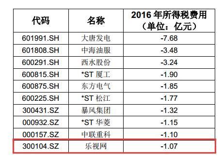 这个数据,相当厉害,在A股3459家上市公司中,以2016年所得税费用最低来排名,乐视能排在第十。排名最靠前的有大唐发电、中海油服、ST厦工、ST松江、ST华菱、暴风集团等。https://p2.ssl.cdn.btime.com/t01218f2172479e95ec.jpg