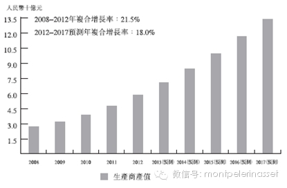 2001-2011年调味品行业的销售额从277.23亿元猛增至1917.89亿元,年复合增长率达到21%。根据Euromonitor报告,中国调味品产值由2008年的人民币1,132亿元上升至2012年的1,942億元,年复合增长率14.4%,而于2012年至2017年,预期年复合增长率为12.4%。