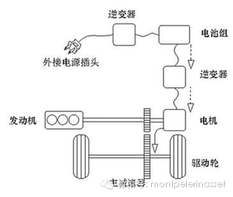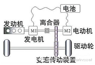 比亚迪F3DM没有动力分配机构,只有简单的几个离合器,两个电机和1.0升的发动机在一个轴上。这个轴通过减速器直接驱动车轮。