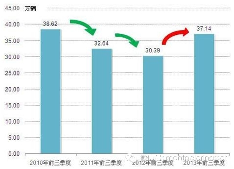 而在2013年前三季度,比亚迪汽车销量37.14万辆,销量不仅实现22.2%的大幅增长,增速也快于乘用车市场平均水平(17.3%)。其汽车业务销量的走好,除了主要与车市整体回暖以外,还主要与其新产品的推出有关。