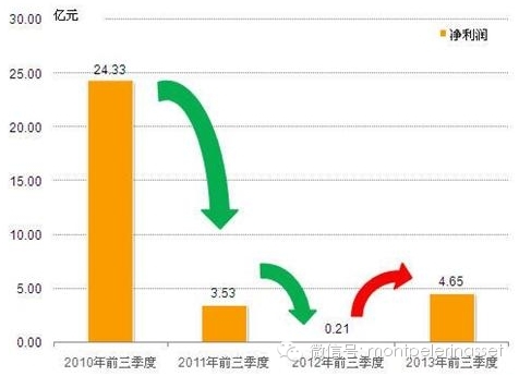 经历三年调整期过后,比亚迪2013年业绩实现复苏。2013年前三季度,比亚迪净利润实现4.65亿元,同比飙升2127.4%,是我国整车上市车企中表现最为突出的企业之一。