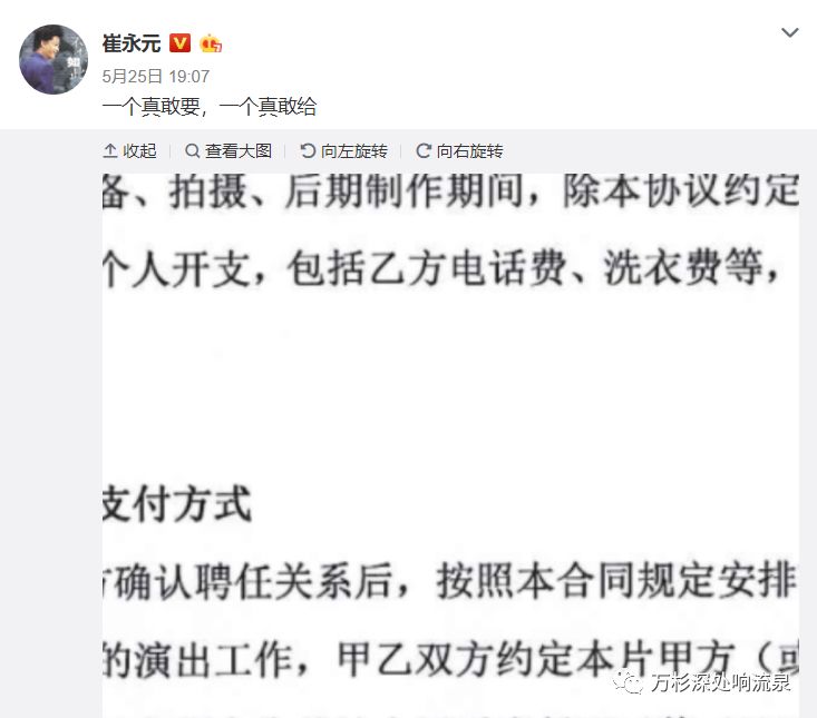 5月25日,崔永元曝光1000万片酬合同。