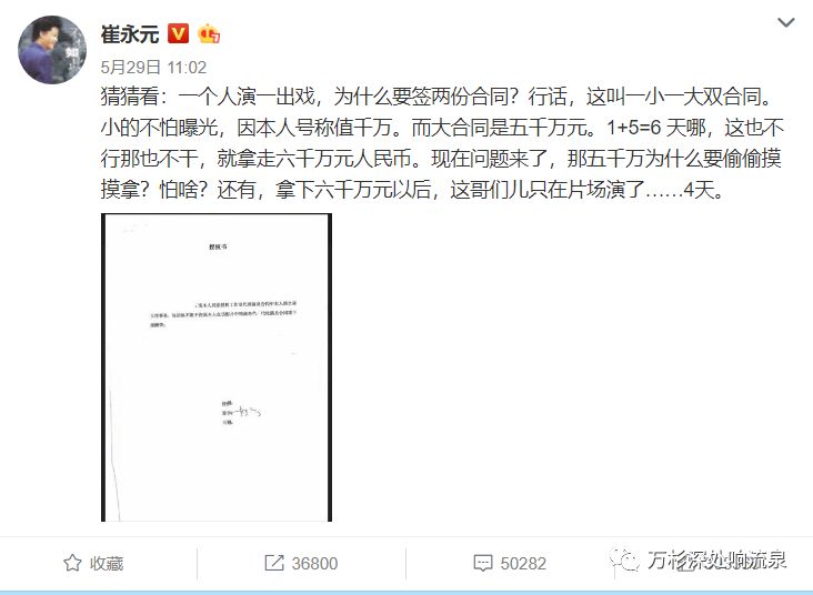5月29日,又曝光5000万片酬阴阳合同。