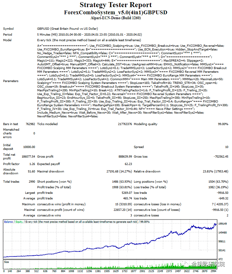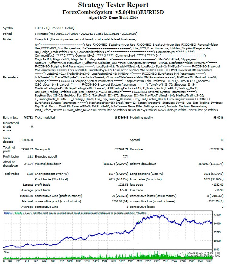 在2010.01.01-2020.04.02期间的历史数据上测试了EA,其设置与默认设置不同(预设包含在存档中):