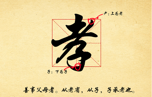 “孝”字是“老“和“子”的象形结合字(如下)https://mmbiz.qlogo.cn/mmbiz/XScqwTvt4cdqQ4FDYiaiaA0ygic5NRkOrVFaNn8SD9kia02pDKtyeGJf9sGSBObfhJdlDDaJjLkVza5aloguQzVKgg/0